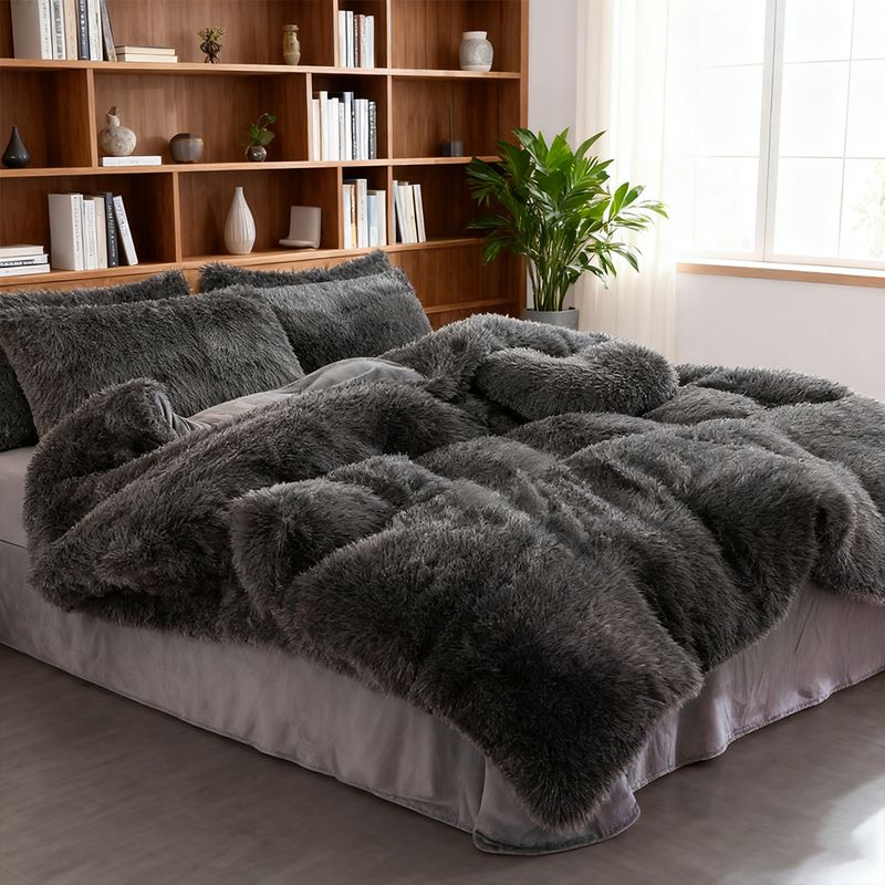 Indulge in warmth and comfort with this exquisite duvet cover set! Soft and luxurious, the fabric delivers exceptional cosiness, ensuring a restful sleep of the night. A plush mink fleece front provides a delightful tactile experience, while the crystal velvet fabric reverse enhances overall comfort. Its minimalist solid colour design effortlessly complements various bedroom aesthetics, adding a touch of understated elegance. This set includes a duvet cover and two matching pillowcases, creating a cohesive look that elevates your bedding ensemble. Perfect for personal use or as a thoughtful gift, it is an ideal choice for enhancing the charm of any bedroom.