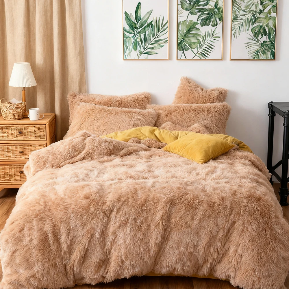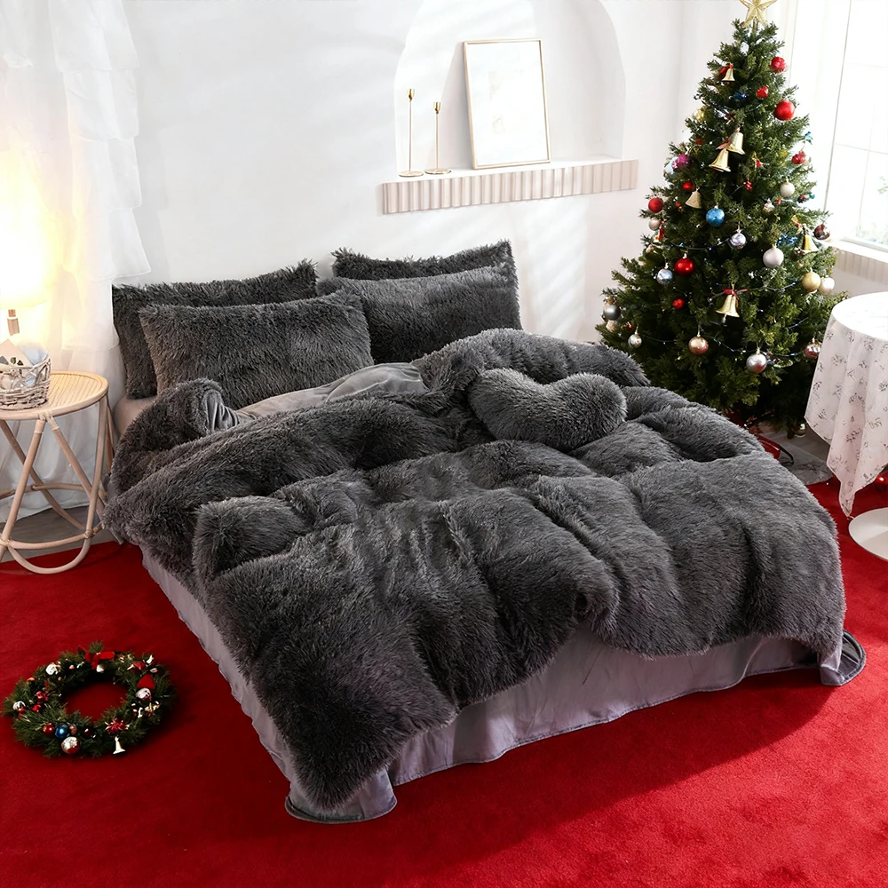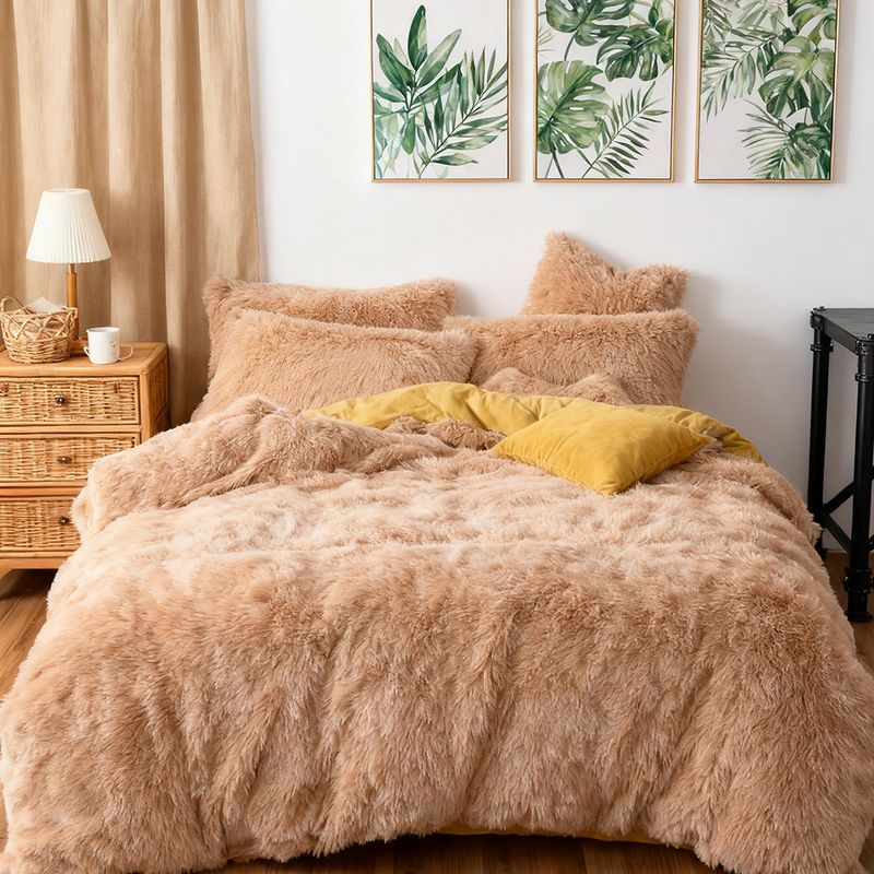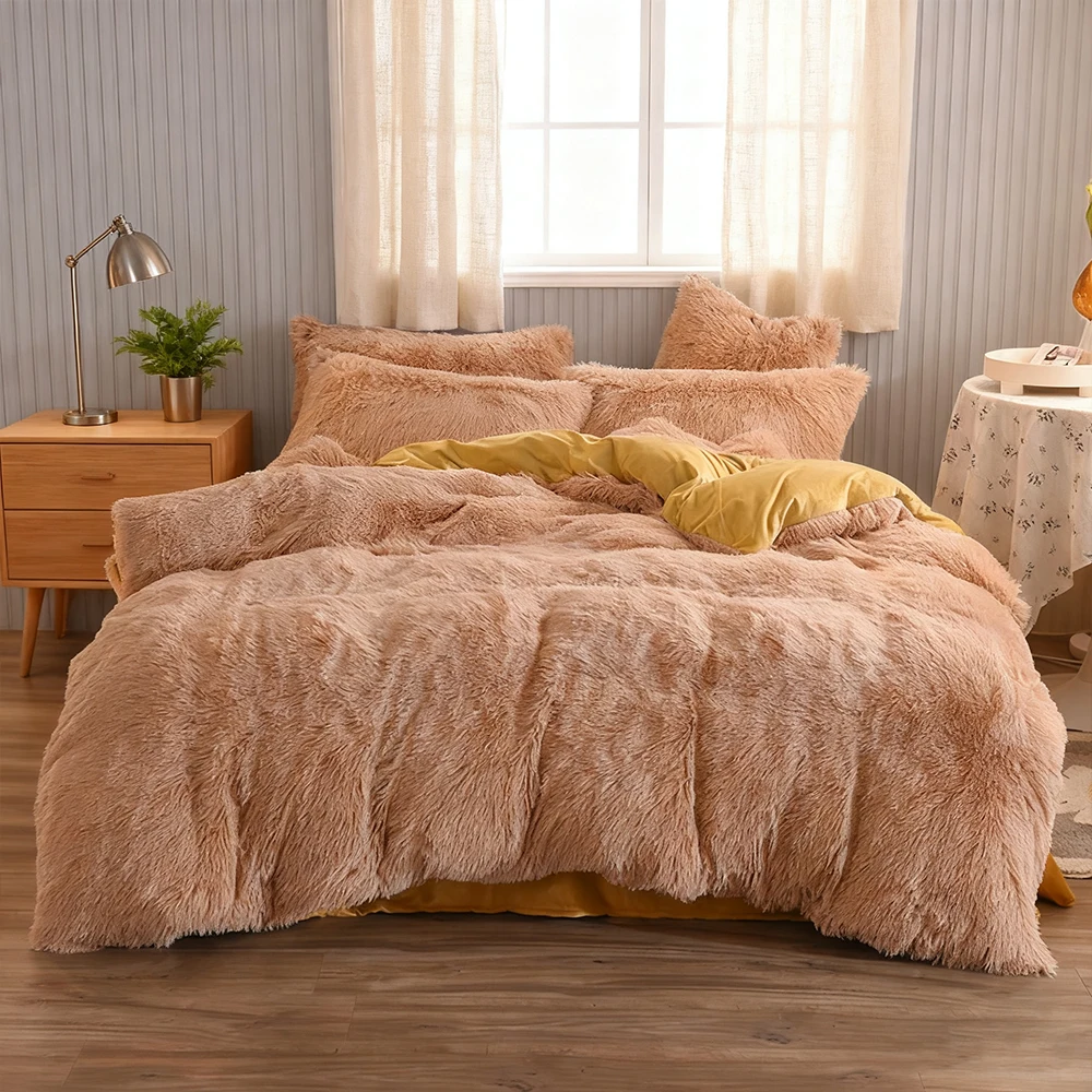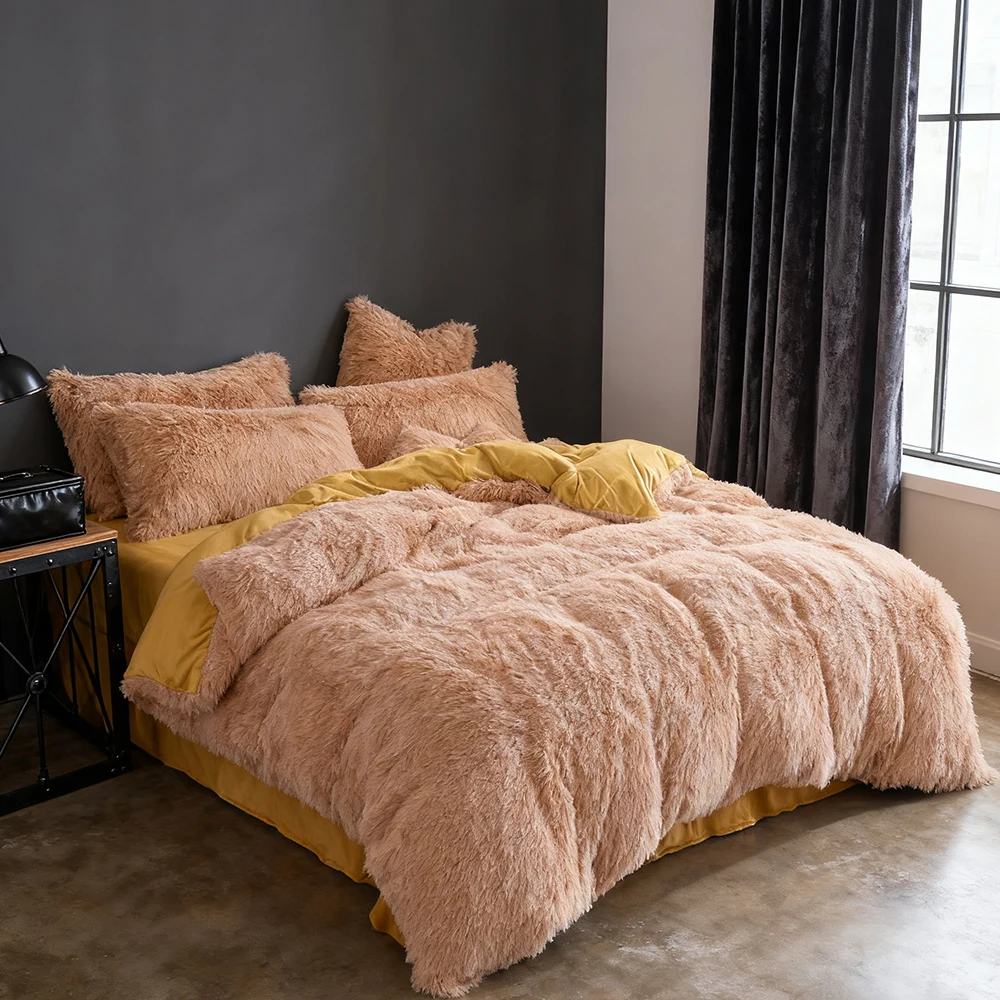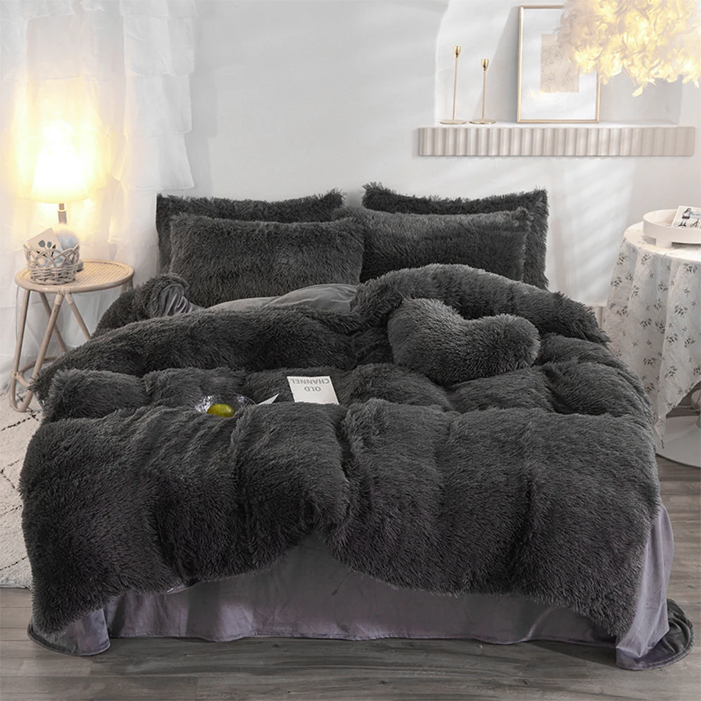 Indulge in warmth and comfort with this exquisite duvet cover set! Soft and luxurious, the fabric delivers exceptional cosiness, ensuring a restful sleep of the night. A plush mink fleece front provides a delightful tactile experience, while the crystal velvet fabric reverse enhances overall comfort. Its minimalist solid colour design effortlessly complements various bedroom aesthetics, adding a touch of understated elegance. This set includes a duvet cover and two matching pillowcases, creating a cohesive look that elevates your bedding ensemble. Perfect for personal use or as a thoughtful gift, it is an ideal choice for enhancing the charm of any bedroom.
