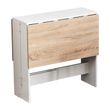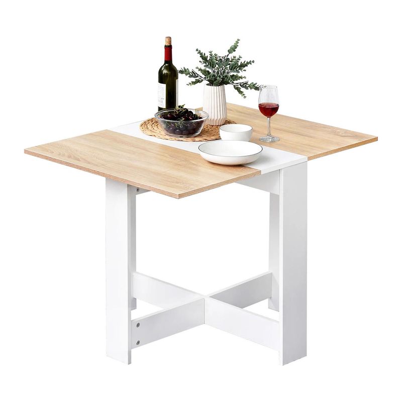 Make large unused tables at home a thing of the past. Choose this drop leaf dining table for extending surface space. Both sides lift up and drop down super easily, which comes in handy when you have guests over for dinner or need more surface for prepping. It can also be an amazing side table or computer desk, just fold down the leaf and have it settled in the living room or entryway. Constructed from strong particleboards and heavy-duty hardware, the table guarantees a delightful user experience.