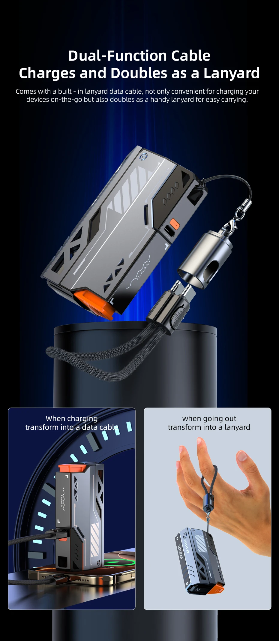 The battery pack has been upgraded with 22.5W PD. When you are in an emergency, the power bank can juice up for a phone from 0% to 50% within 30 minutes.Besides, it use advanced intelligent protection chip, effectively prevent overcurrent, overvoltage, short circuit, temperatu1re and other hidden dangers, reliable durable, top-safety.