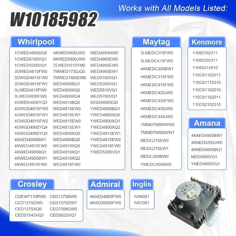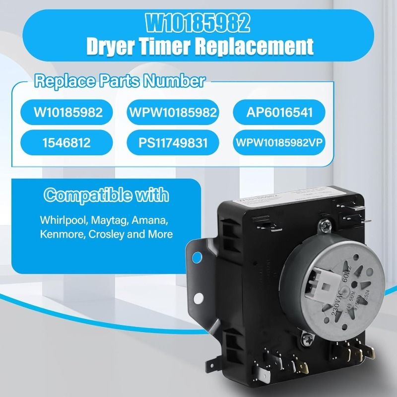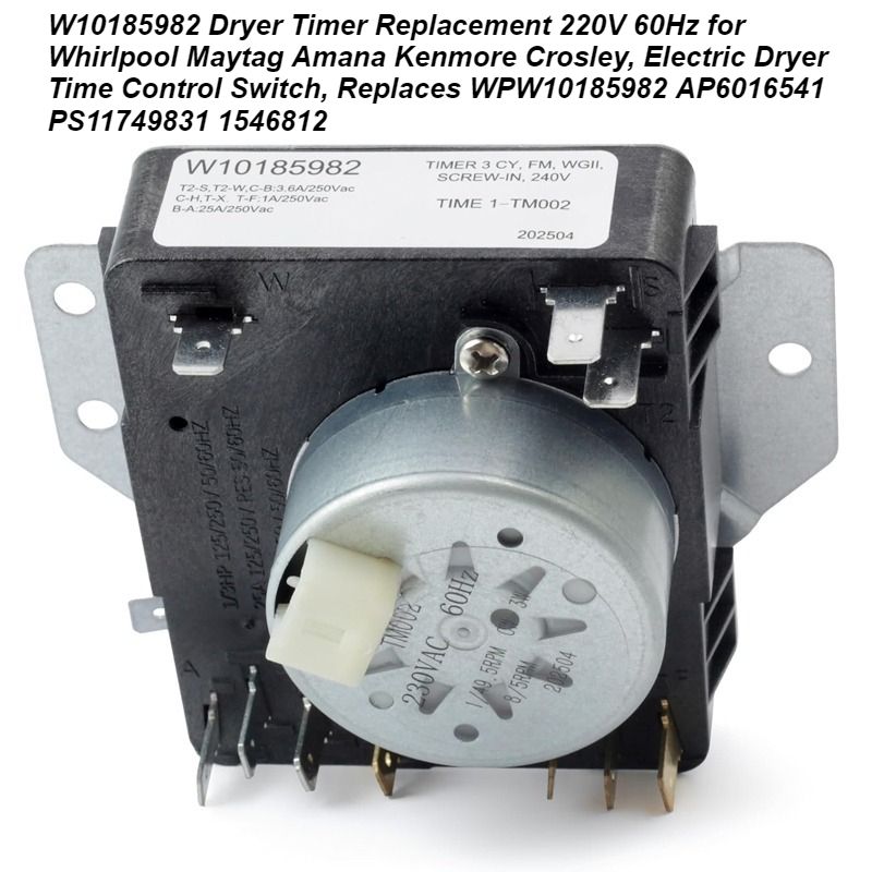 W10185982 Dryer Timer Replacement–220V 60Hz Electric Timer Fits Whirlpool Maytag Amana Kenmore Crosley Replaces WPW-82 AP6016541