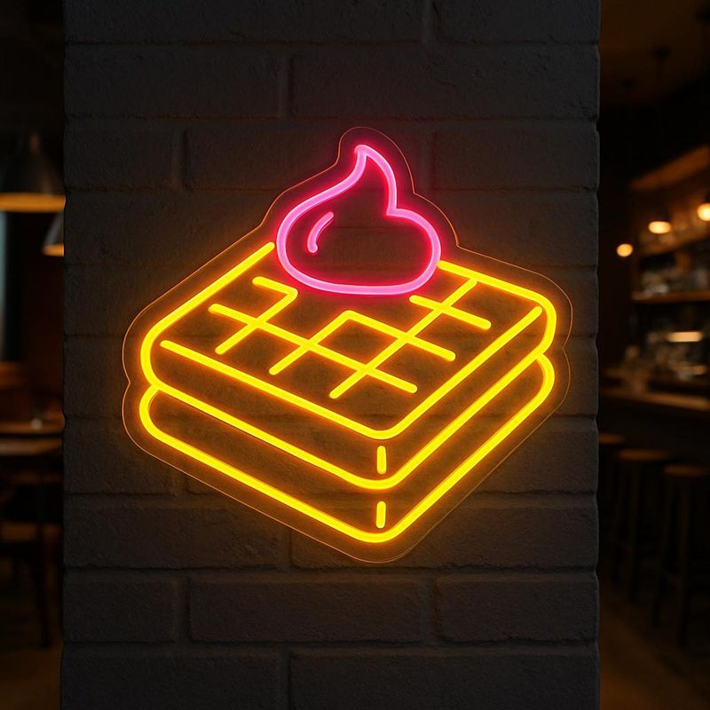 Waffles Neon Sign Your Cafe Waffles Shop Wall Art Decor Custom Food Restaurant Business Store Wall Hanging Personalized Gift