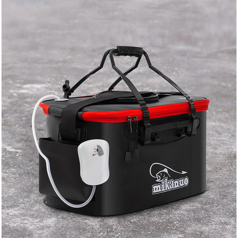 • Storing water for camping,hiking,also for live bait, multifunctional tools.Side pocket for oxygen pump,which will make your fishes Breathing,and net lid makes more convenience when you putting the fishes in and out.