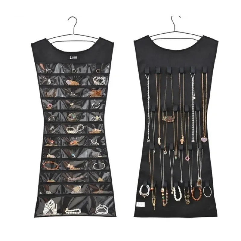 Wall Hanging Jewelry Organizer Storage with Pocket Double Sided Necklace Bracelet Earrings Jewelry Display Holder (No Hanger)