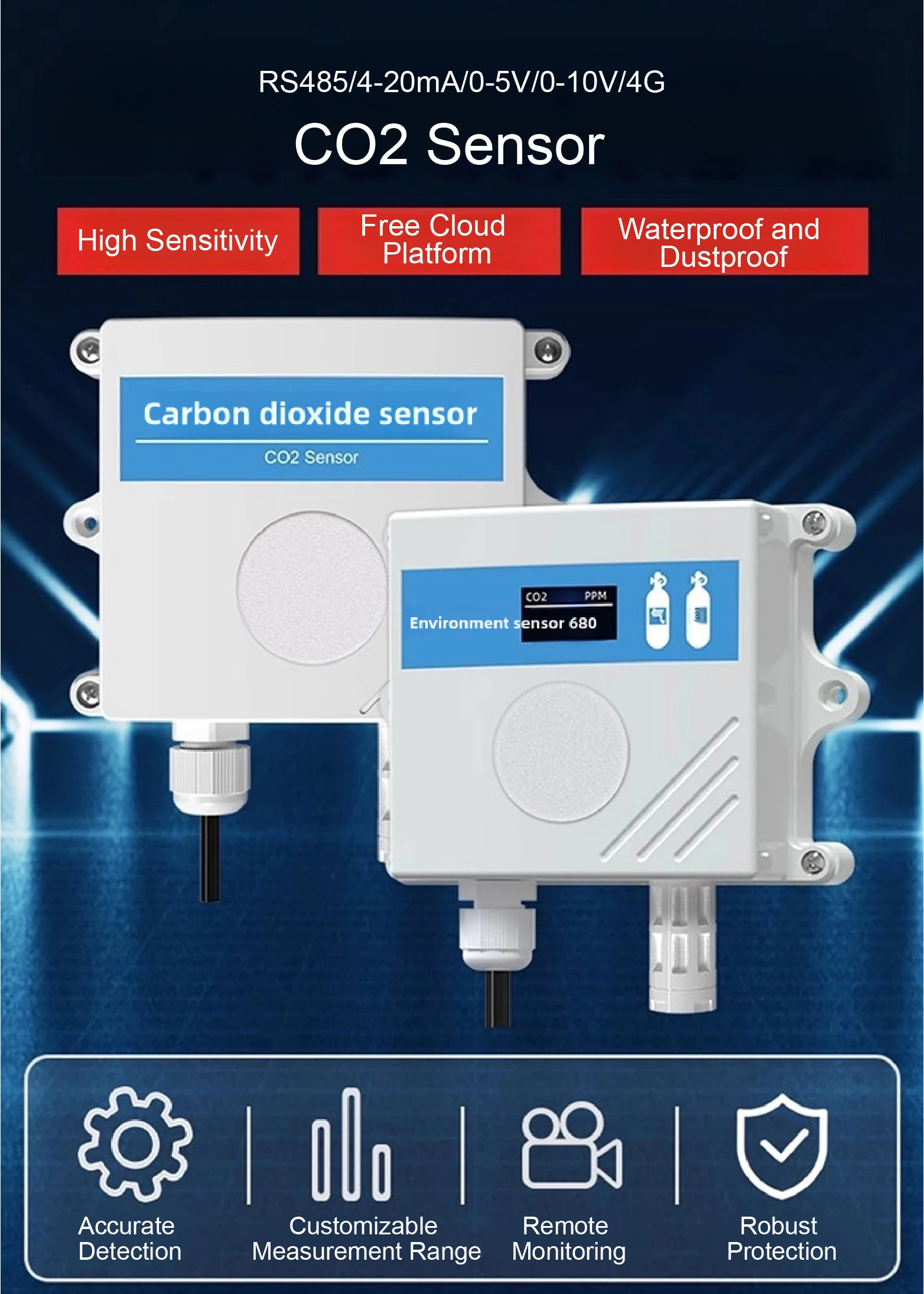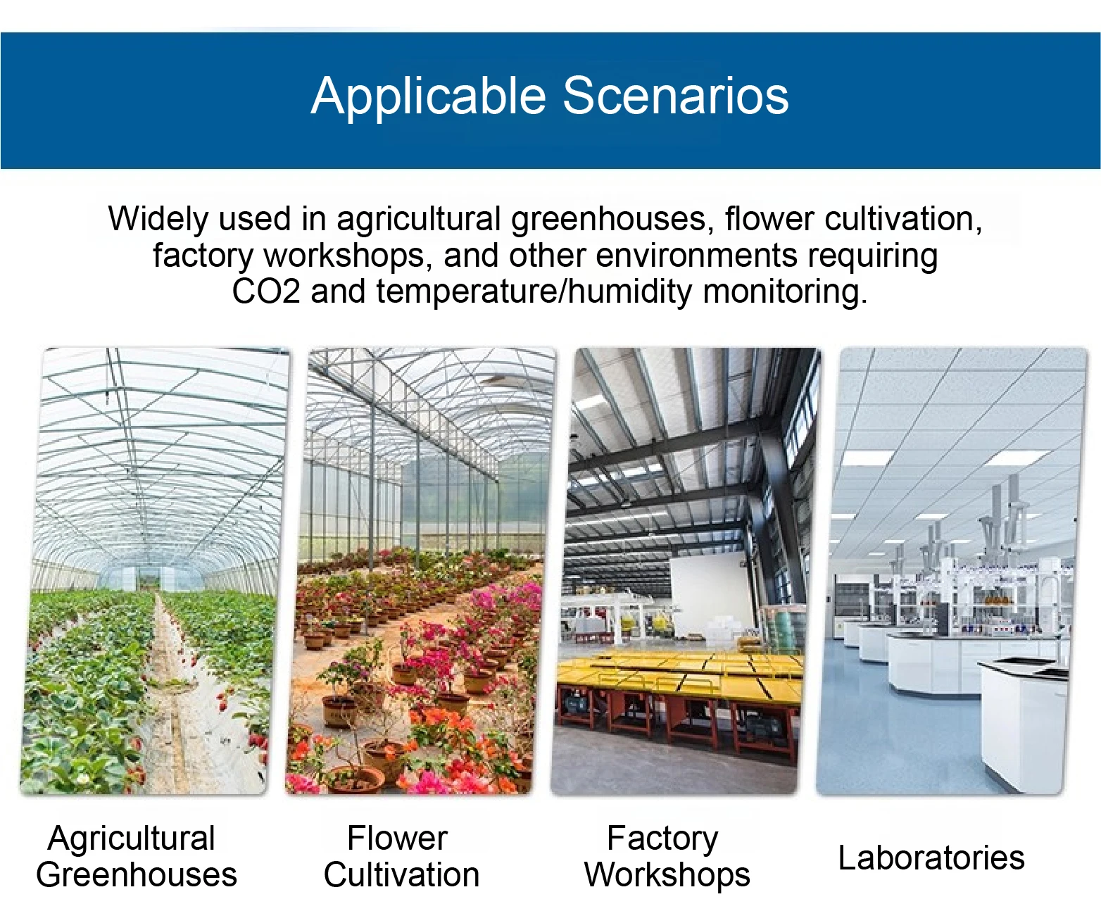 Designed for scenarios requiring CO2, temperature, and humidity monitoring.