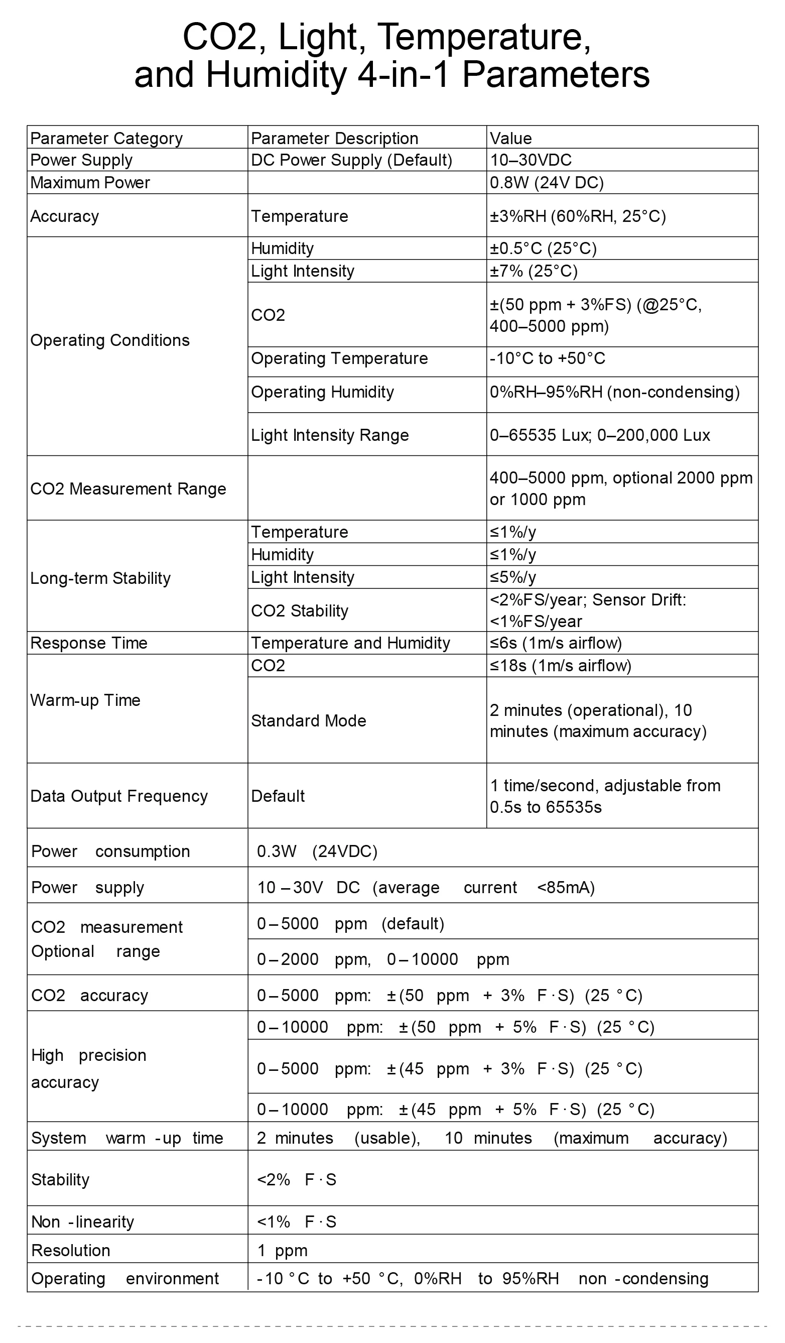 High Precision Accuracy (0~5000ppm) | ±(45ppm+3%F·S) (25°C) |