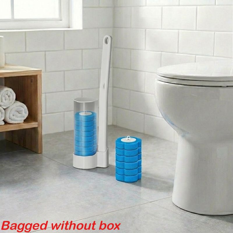 [Extended Handle] This toilet brush cleaner comes with an ergonomically designed extended and reinforced handle for a comfortable grip. The toilet brush head is made of non-woven fabric and sponge, containing solid cleaning factor that melts in contact with water. The toilet brush storage holder can be mounted on the wall using our adhesive mount (product includes wall adhesive sticker).