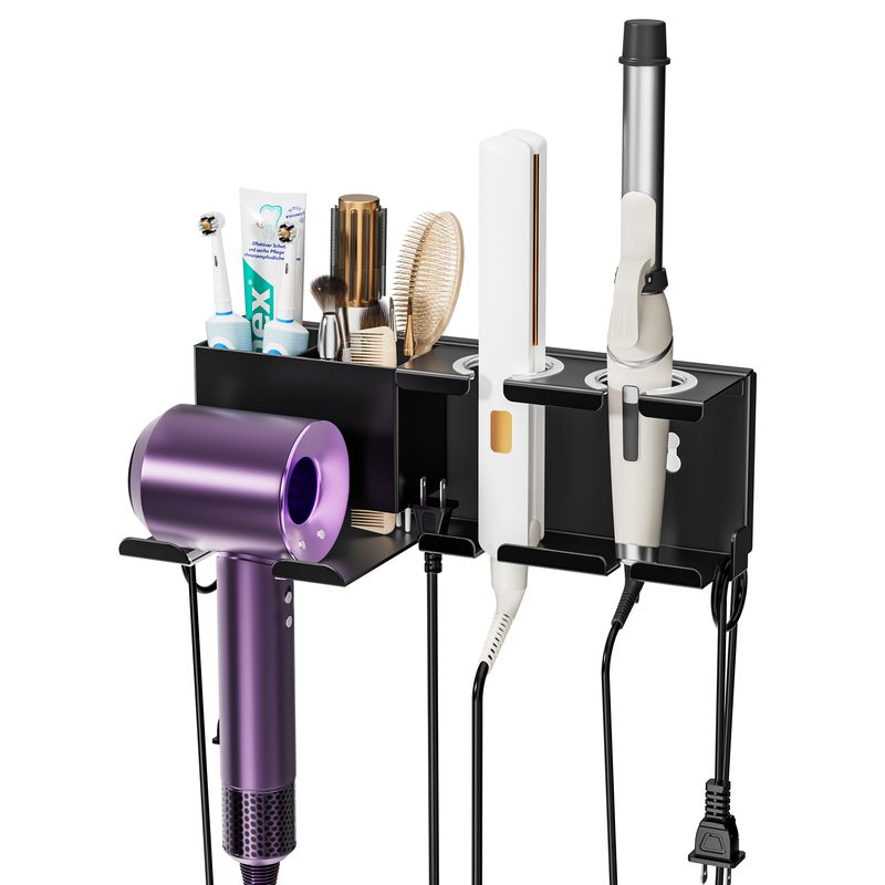 Space-Saving & Multi-Functional Storage: Featuring a sleek wall-mounted design, this hair tool organizer takes up minimal space while providing ample storage. It includes a hook for hanging your blow dryer and additional space for curling irons, straighteners, and other hair tools, keeping your bathroom or salon neatly organized.