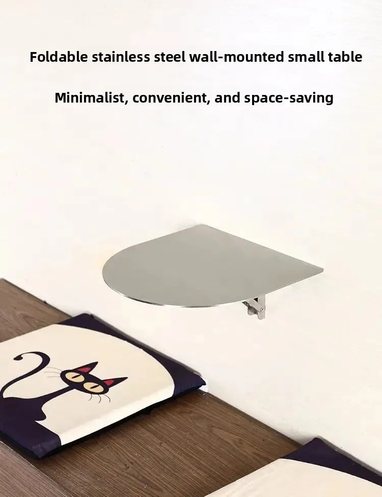 folding table, stainless steel wall desk, round cafe table, milk tea shop furniture, small space desk, apartment folding table, wall mounted dining table, compact leisure desk, stainless steel round table, space saving cafe table