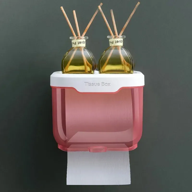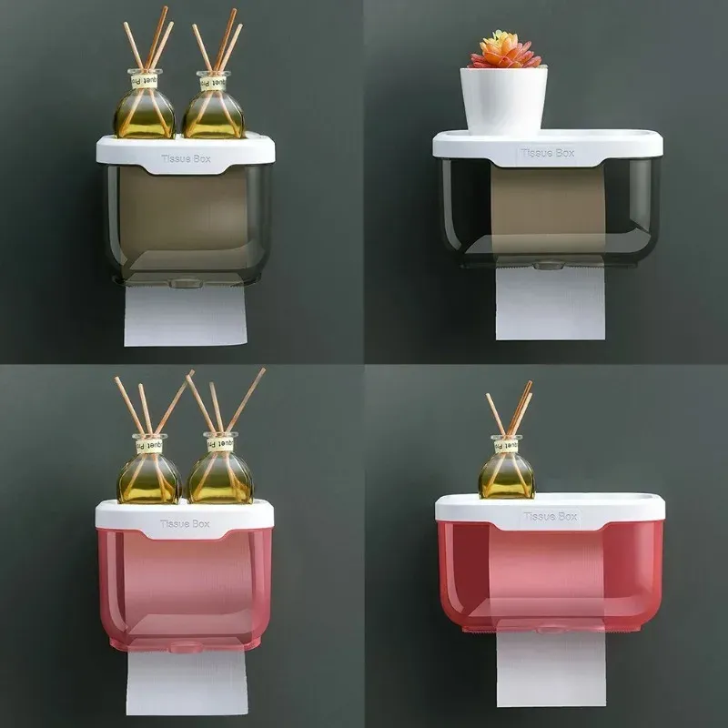 Upgrade your bathroom or kitchen with this stylish wall-mounted toilet paper holder and waterproof tissue box. Designed with a built-in shelf, this holder provides convenient storage for small items like candles, plants, or fragrance diffusers, enhancing both functionality and decor. The transparent cover protects tissues from water and dust, keeping them clean and dry. Easy to install and perfect for saving space, this tissue holder is ideal for any modern home.