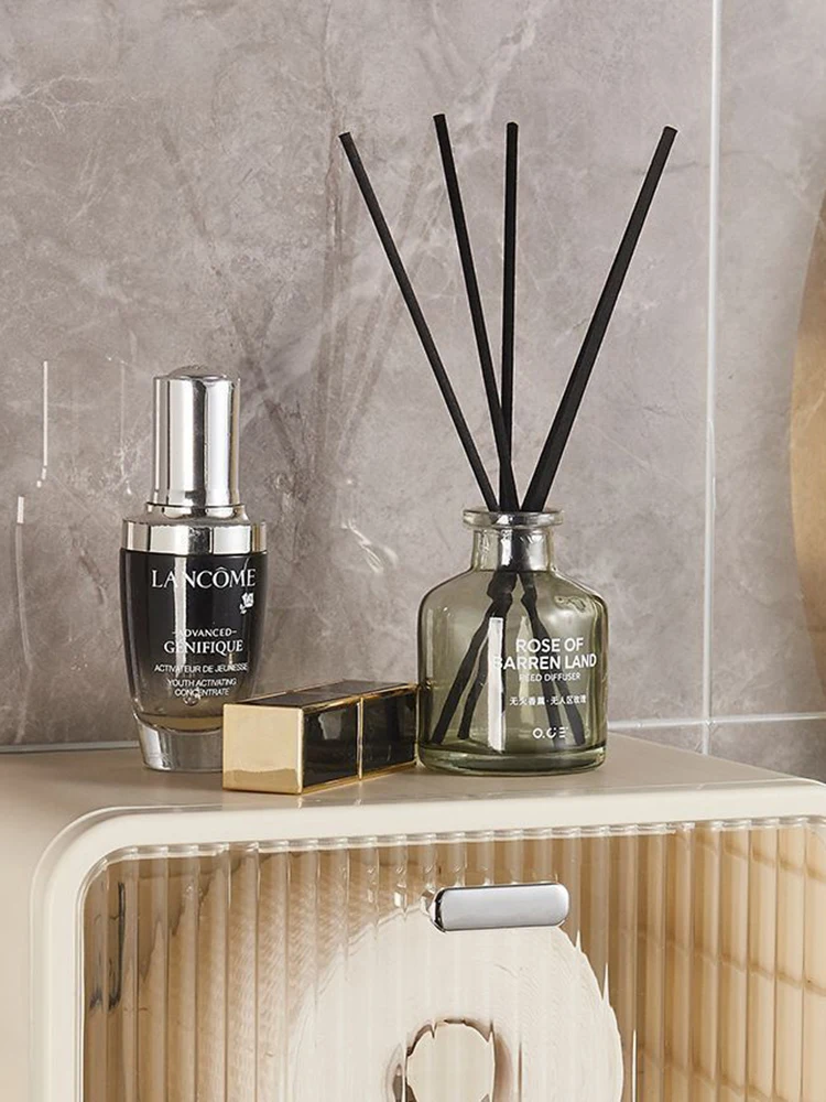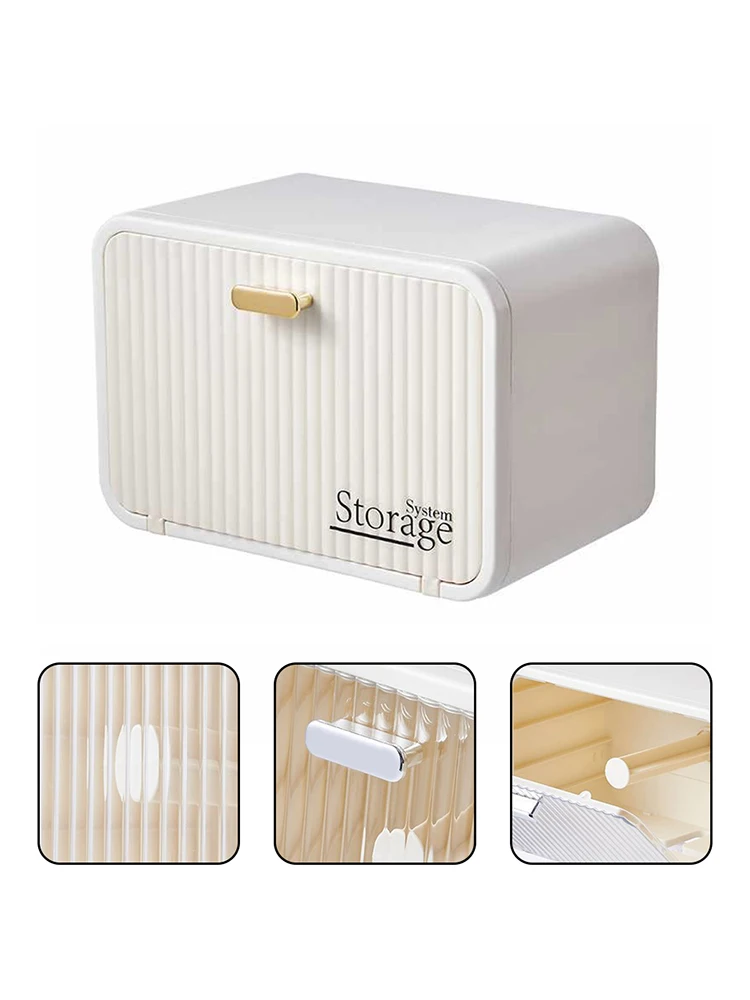 This tissue box serves dual purposes, storing both roll paper and face towels, making it a versatile addition to any bathroom.