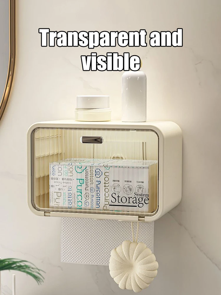 Wall Mounted Transparent Waterproof Tissue Box for Toilet Dormitory Bathroom Roll Paper Face Towel Storage Organizer