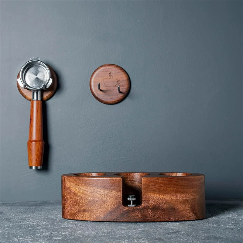 1pcs Walnut Wood Coffee Portafilter Wall Rack
