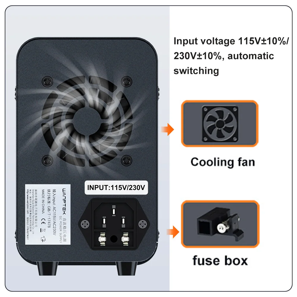 Wanptek's new series products. This model is a miniature switching DC power supply. The output voltage and current can be controlled and adjusted by variable resistors respectively, so it provides more convenience and accuracy in the adjustment of voltage and current. The panel also provides high-precision two/three-window digital tube display of voltage, current and power, so that users can intuitively see the current use status and various parameters of the machine