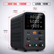 Wanptek DC Power Supply 30V 10A 60V 5A 120V 3A Adjustable Laboratory Power Supply with USB fast Charging Bench Power Supplies