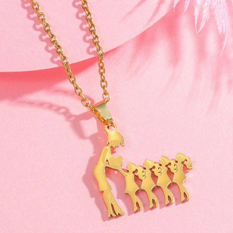 Warm Family Silhouette Family Necklace Stainless Steel Pendant Ornament Mother And3 Son