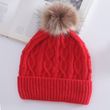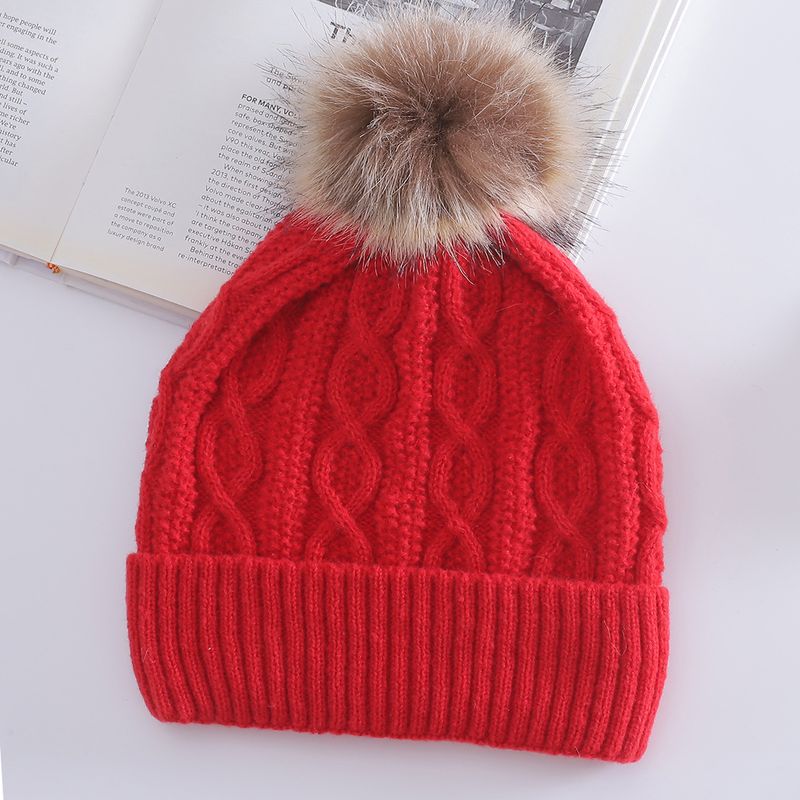 Warm Leisure Flanging Pompons Knitted Hat Red