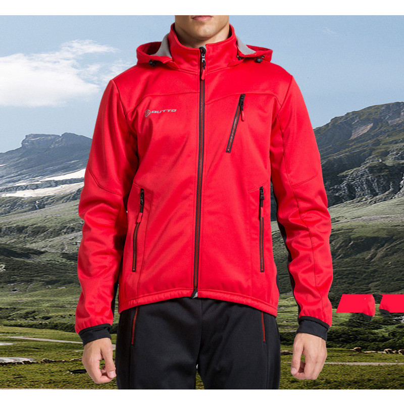 Warm long sleeve hooded windproof bike jacket Green L