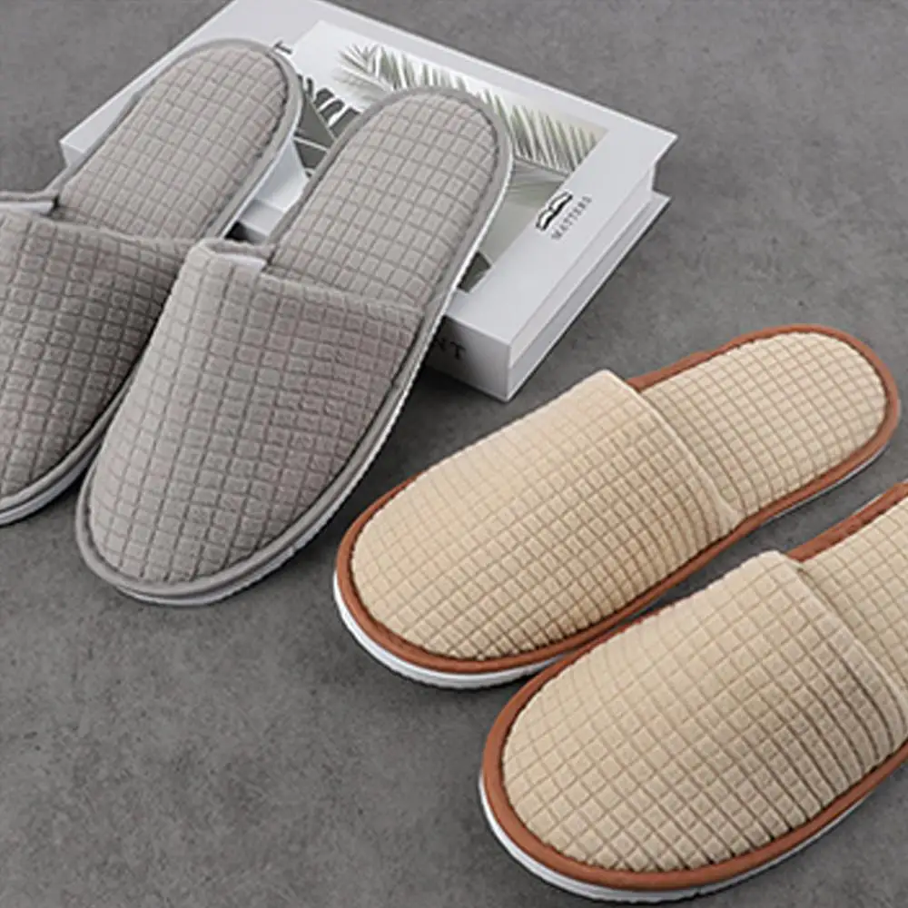 Warm plush Closed Toe Non-slip Hotel Slippers Thicken Cotton Disposable Bathroom Slippers Couples Indoor Home Slipper