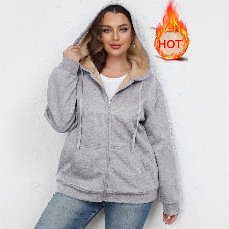 Warm Plush Hoodie Coat Women's Zipper Black S