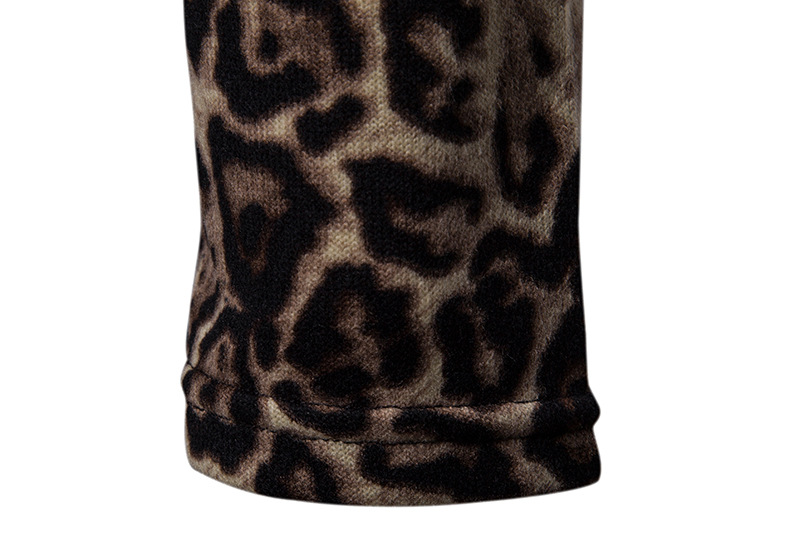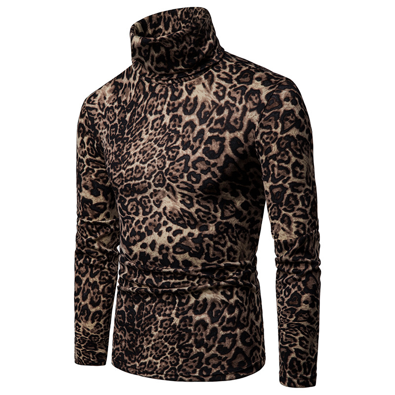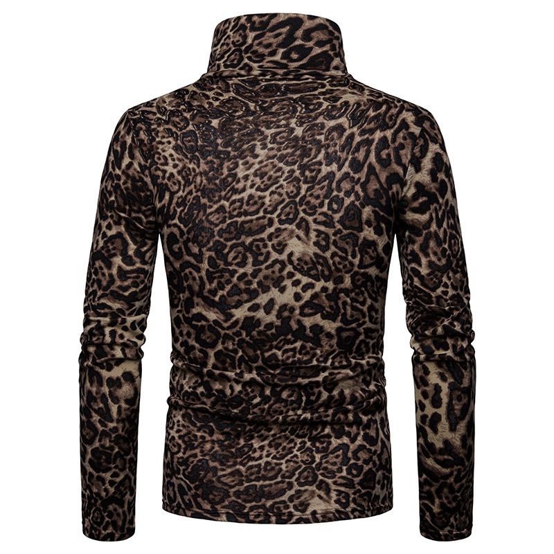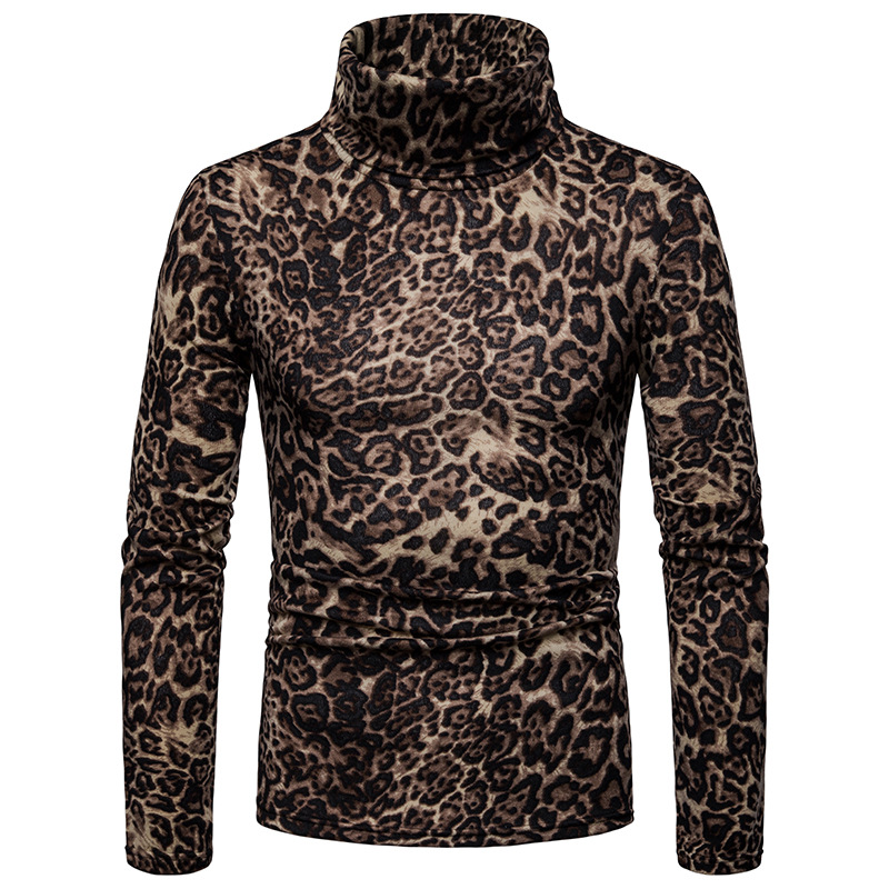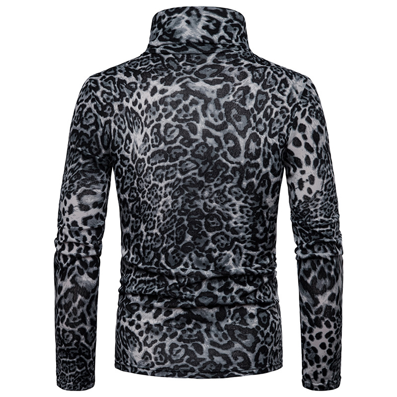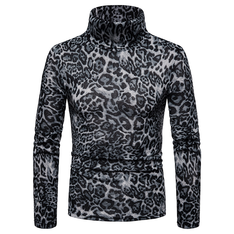 Warm turtleneck sweater leopard print bottoming shirt black 2XL