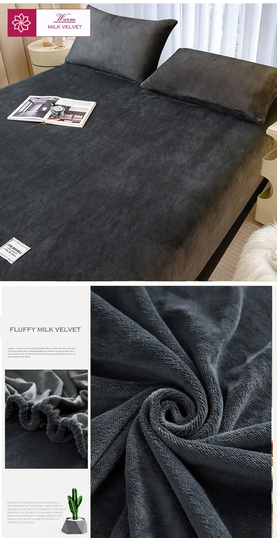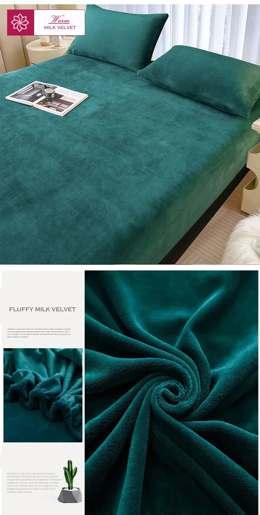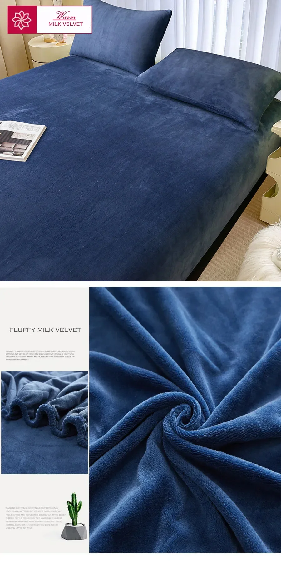 WASART Winter warm plush fitted sheet elastic mattress cover fluffy velvet fleece bed linen couple thermal double bed king size