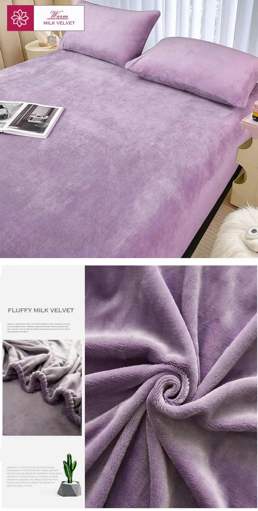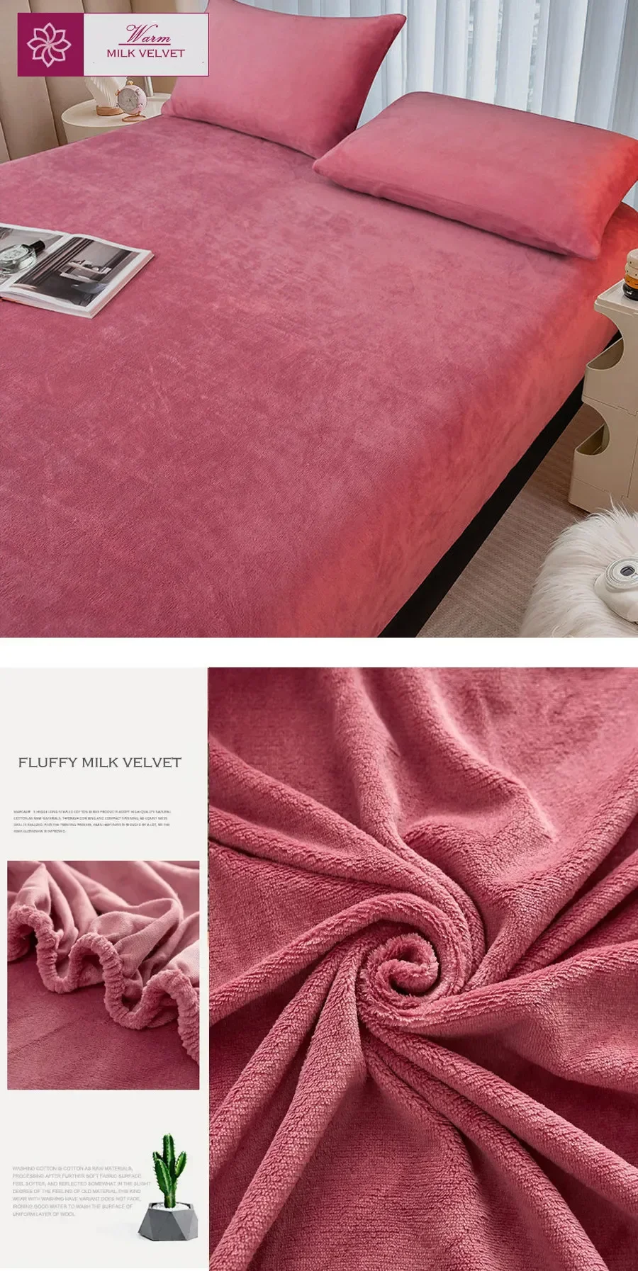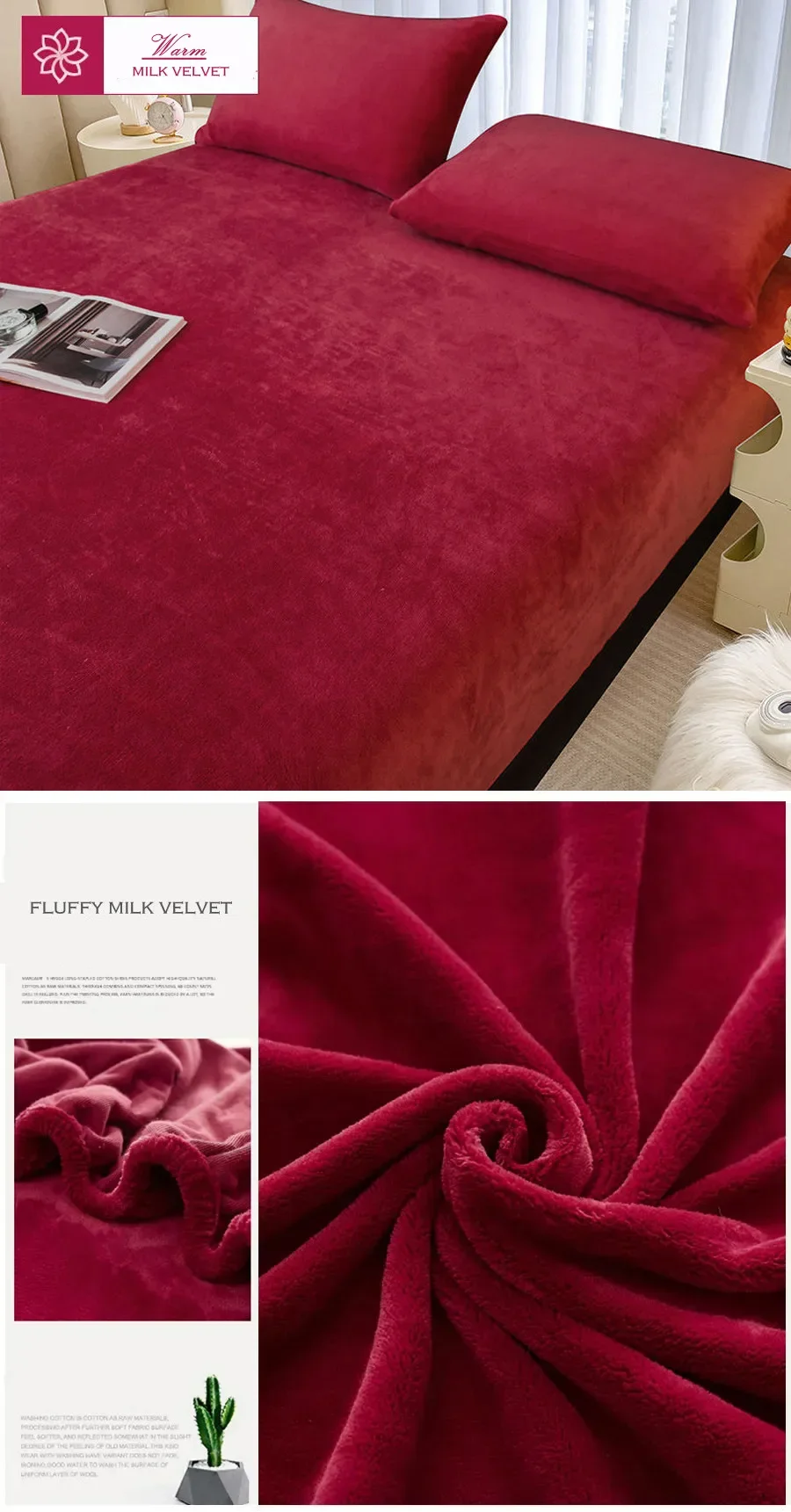 WASART Winter warm plush fitted sheet elastic mattress cover fluffy velvet fleece bed linen couple thermal double bed king size