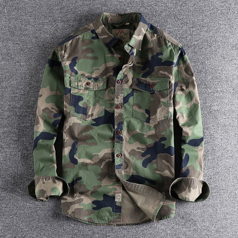 Washed Camouflage American Tooling Long-sleeved Shirt Men Green L