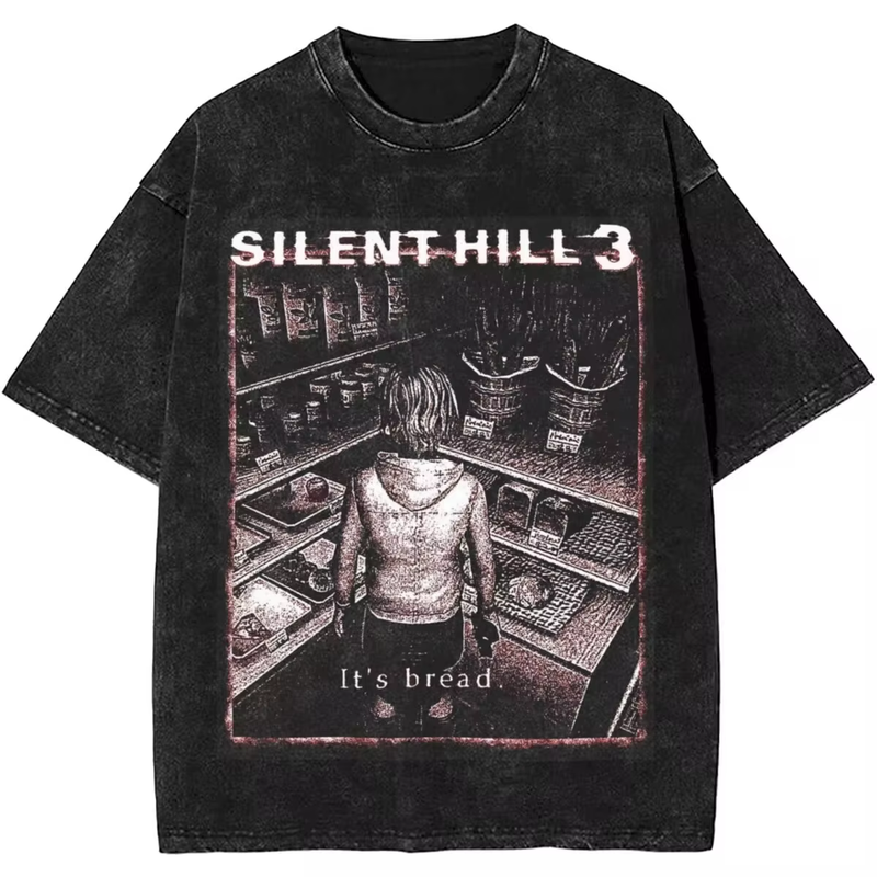 Washed T Shirts Horror Silent Hill Heavens Night Hip Hop T-Shirt Street Streetwear Short Sleeve Printed Tops Tees Men Women