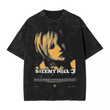 Washed T Shirts Horror Silent Hill Heavens Night Hip Hop T-Shirt Street Streetwear Short Sleeve Printed Tops Tees Men Women