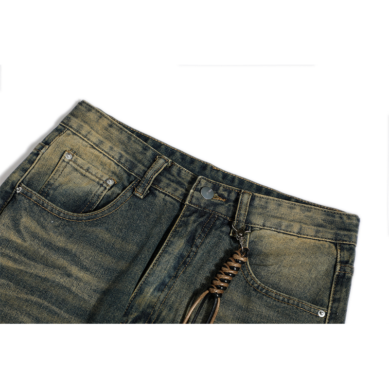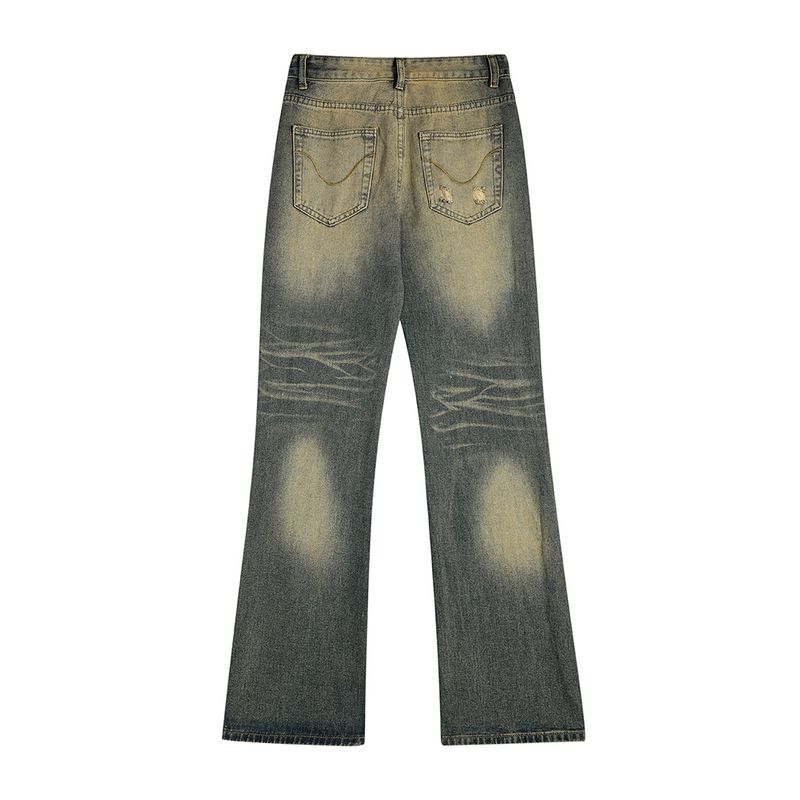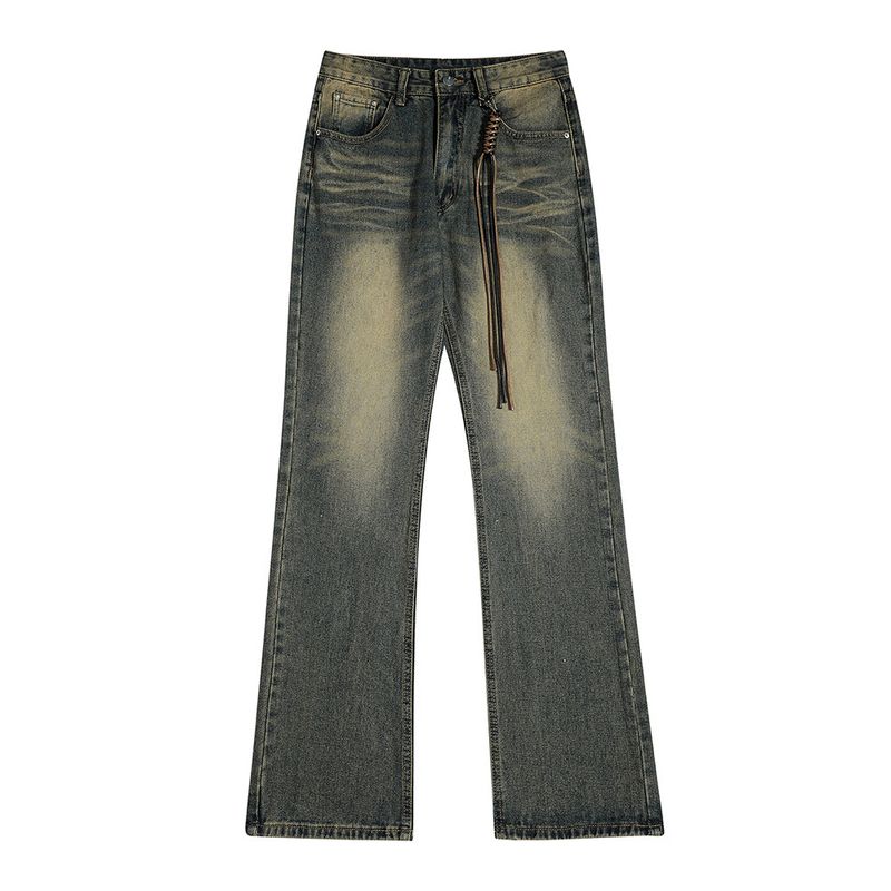 Washed White Denim Bootcut Trousers Men Blue Without Pendant S