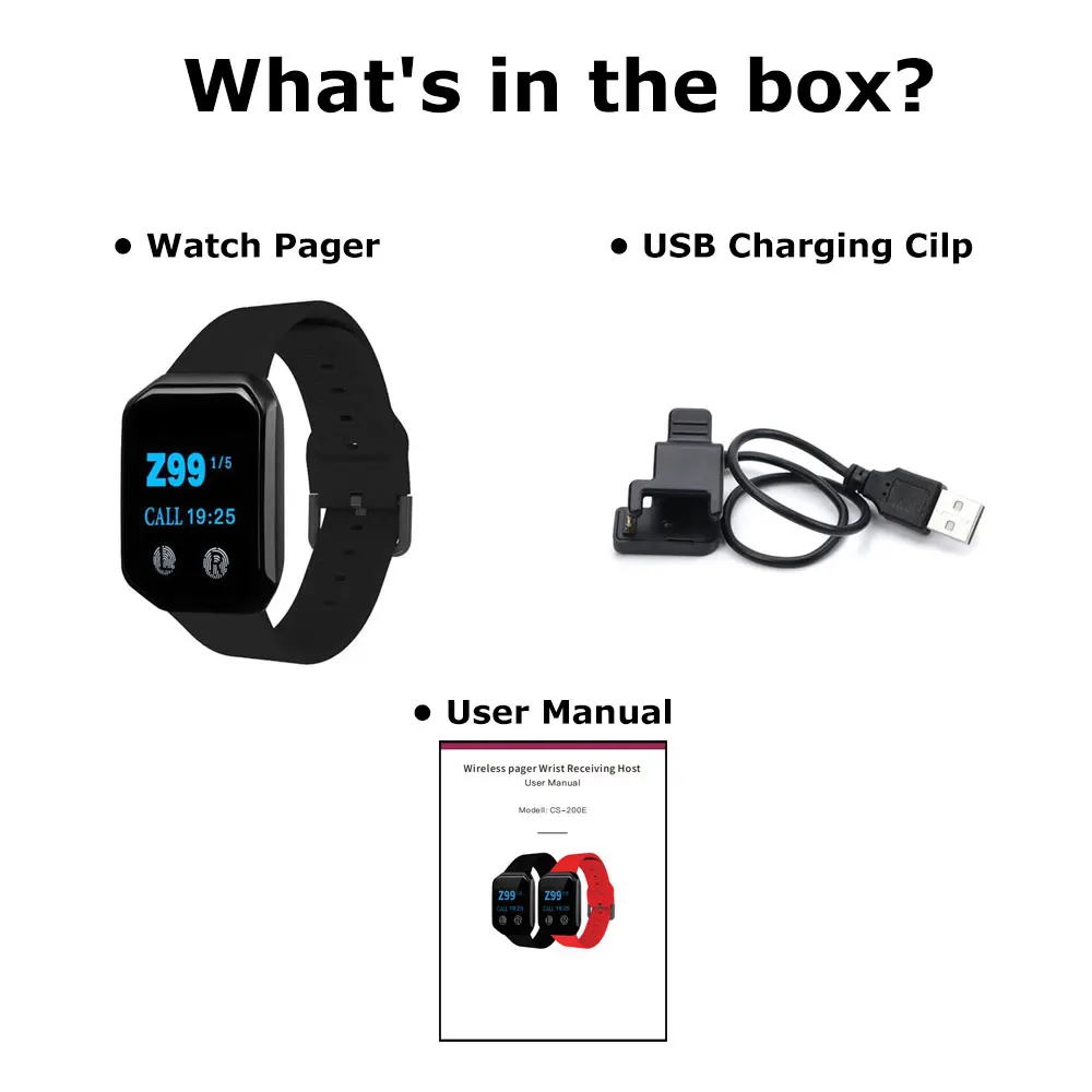 The wireless receiver wrist watch pager system not only can be used in restaurant, hotel, clinic,shop or anywhere customer waiting for their service, also a emergency call tool for elderly, pregnant, children disabled.