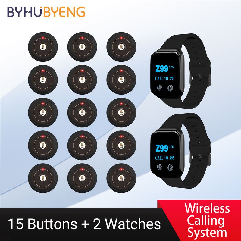 Wireless watch pager only works with BYHUBYENG's call buttons, cannot be used with other brands of products.