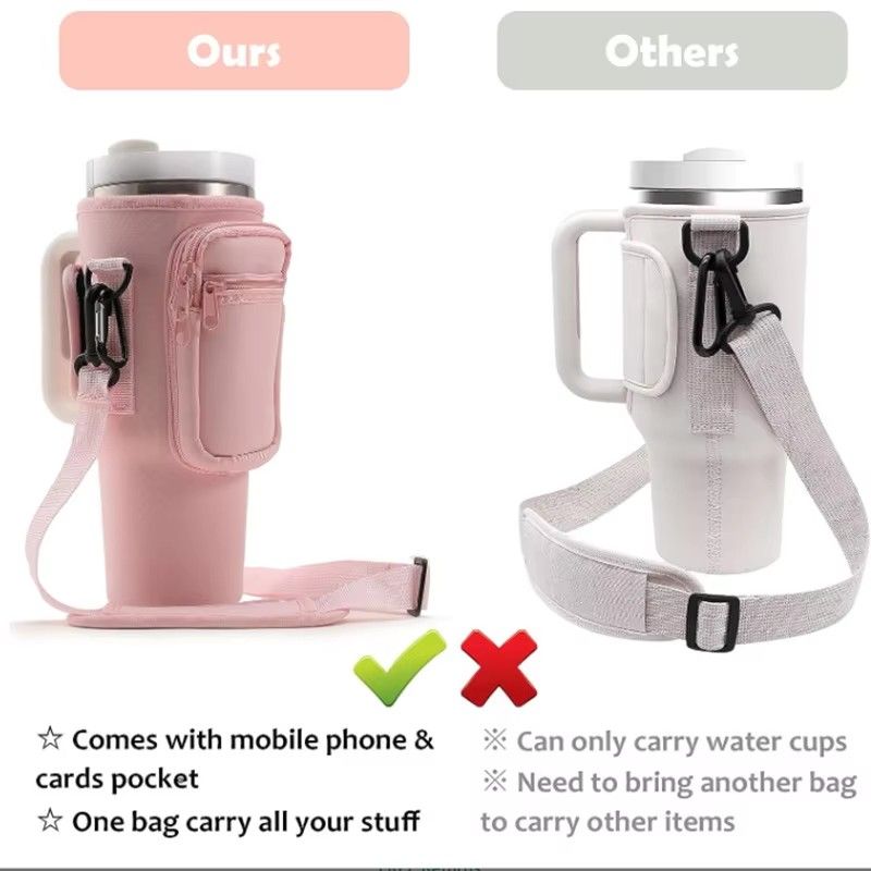 Water Bottle Carrier Bag with Phone Pocket for Stanley Cup 40 oz, Water Bottle Holder Adjustable Strap Stanley Cup Accessories