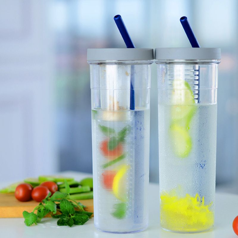 Water Bottle Portable Fruit Infuser Water bottle Sports Lemon Juice Bottle Flip Lid for Kitchen Camping Travel Outdoor Blue