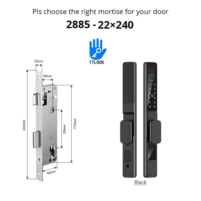Waterproof Sliding Door Smart Lock TTLock App Alexa Fingerprint Digital Code RFID Card Anti-Lock Aluminum Glass Electronic Lock