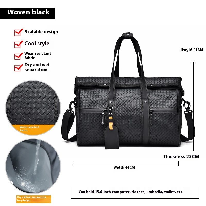Waterproof Sporty Simplicity Hand-held Luggage Bag 8611 Woven Pattern Black