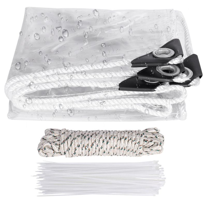 Waterproof Transparent PVC Tarpaulin with Eyelets Weatherproof Durable Canopies Foldable 0.3mm Rain Cover for Garden Furniture
