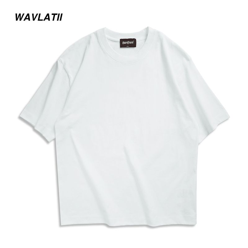 WAVLATII New Men Oversized T shirts Female 260 GSM Casual White Streetwear Tees Black Solid Basic Summer Tops for Young WMT2401