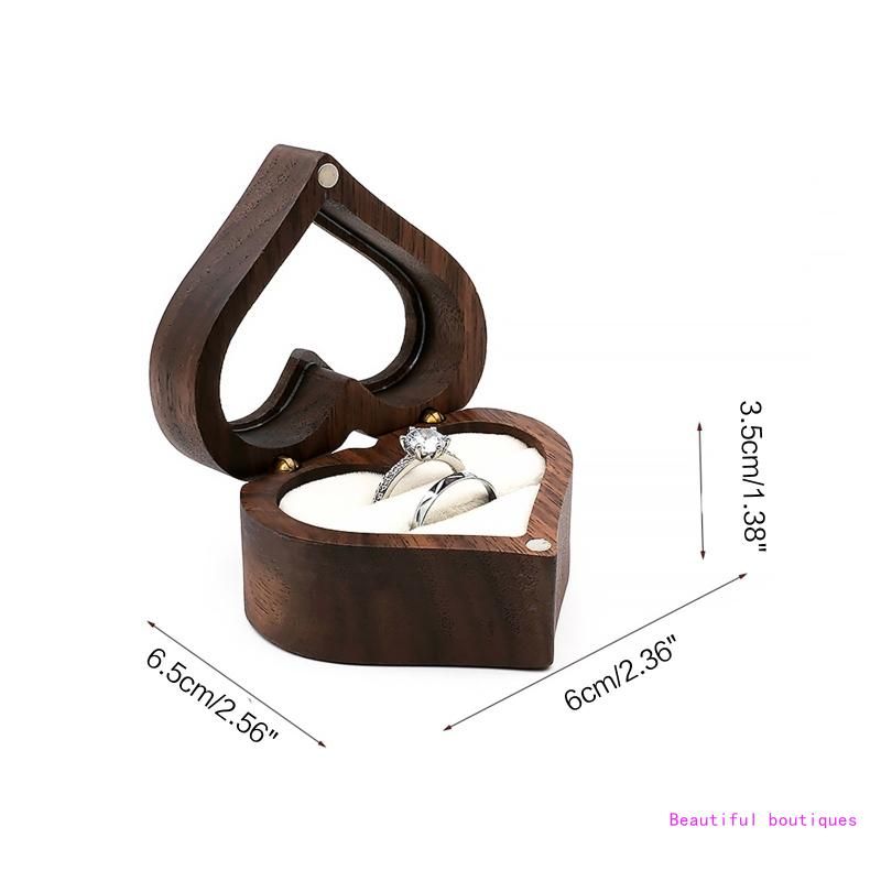 Wedding Love Ring Box Walnut Pair Ring Storage Packaging Gift Box Heart-shaped Wooden Box Ear Stud Earrings Jewelry Box DropShip