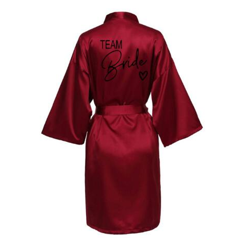 Wedding Party Team Bride Robe With Black Letters Kimono Satin Pajamas Bridesmaid Bathrobe SP003