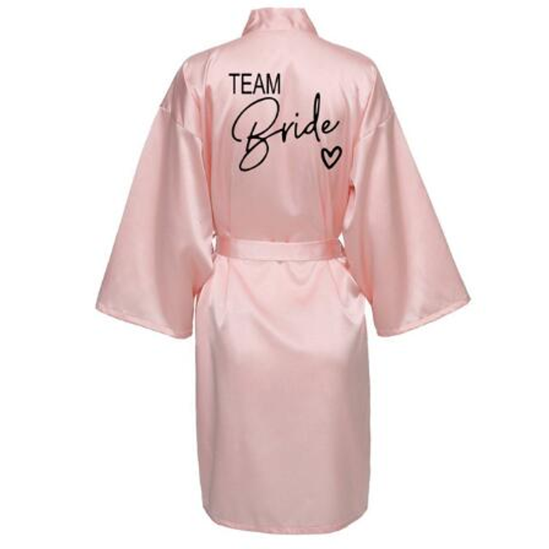 Wedding Party Team Bride Robe With Black Letters Kimono Satin Pajamas Bridesmaid Bathrobe SP003