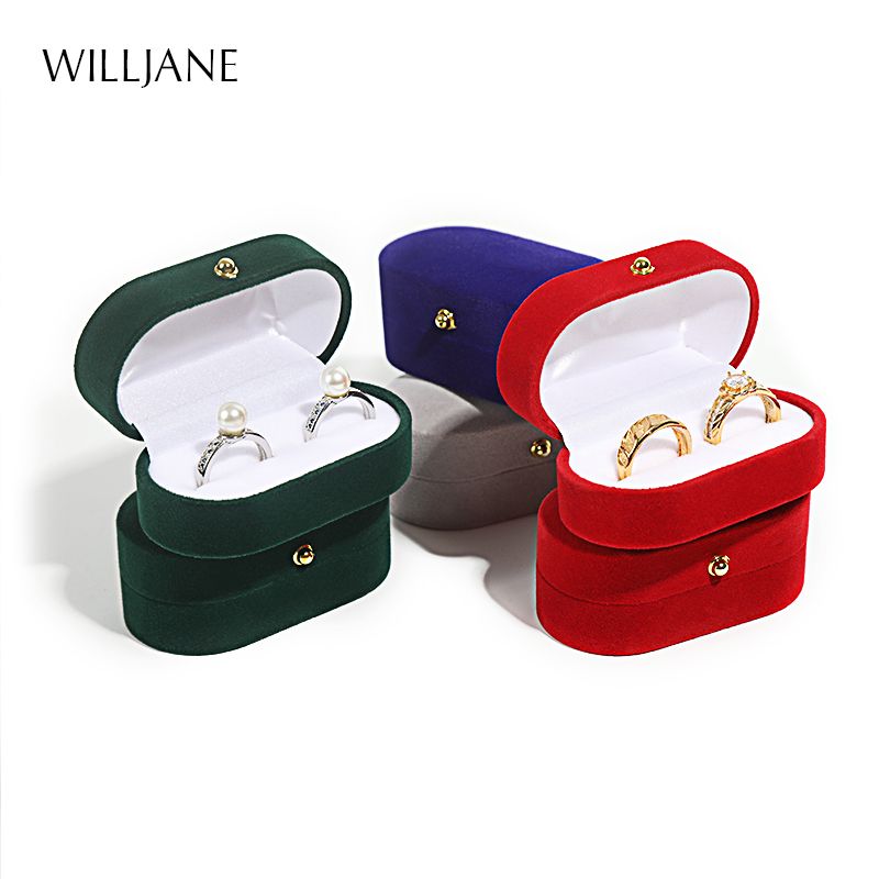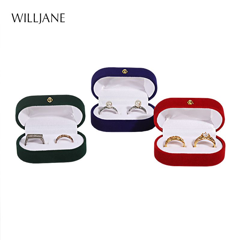 Wedding Ring Packaging Box Ear Studs Holder Velvet Engagement Couple Ring Box Valentine Gift Double Rings Storage Display Case
