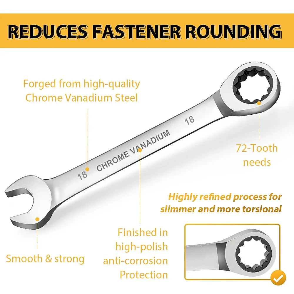 【72-TOOTH】Our wrench head adopts 72-tooth gear, rotates once only needs 5-degree working swing arc.It is convenient to work in a narrow space.It also speeds up your work without repeatedly lifting it.
