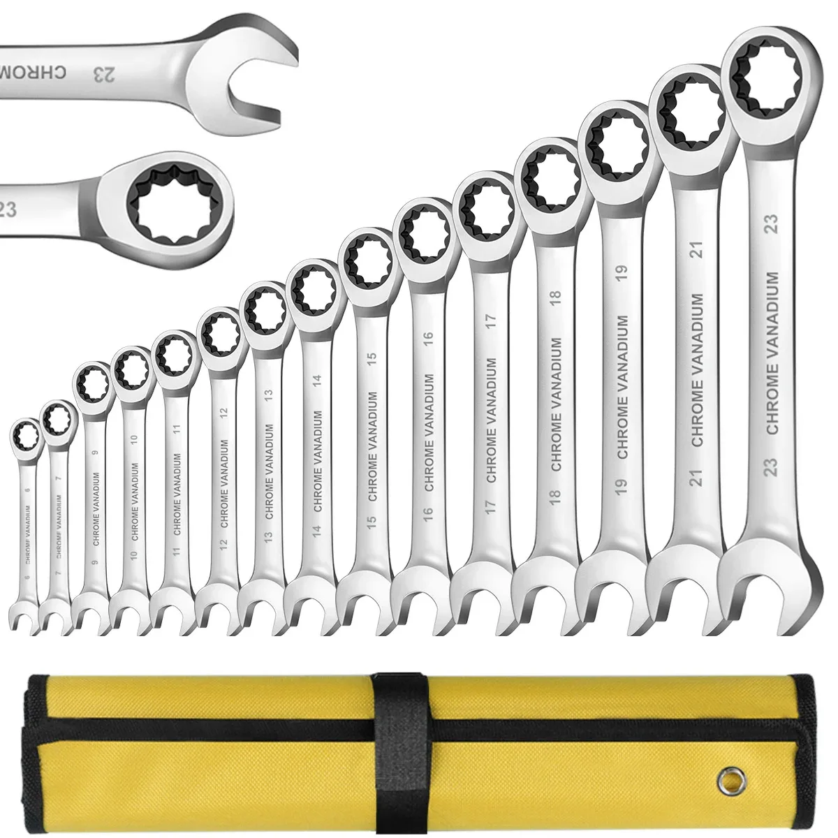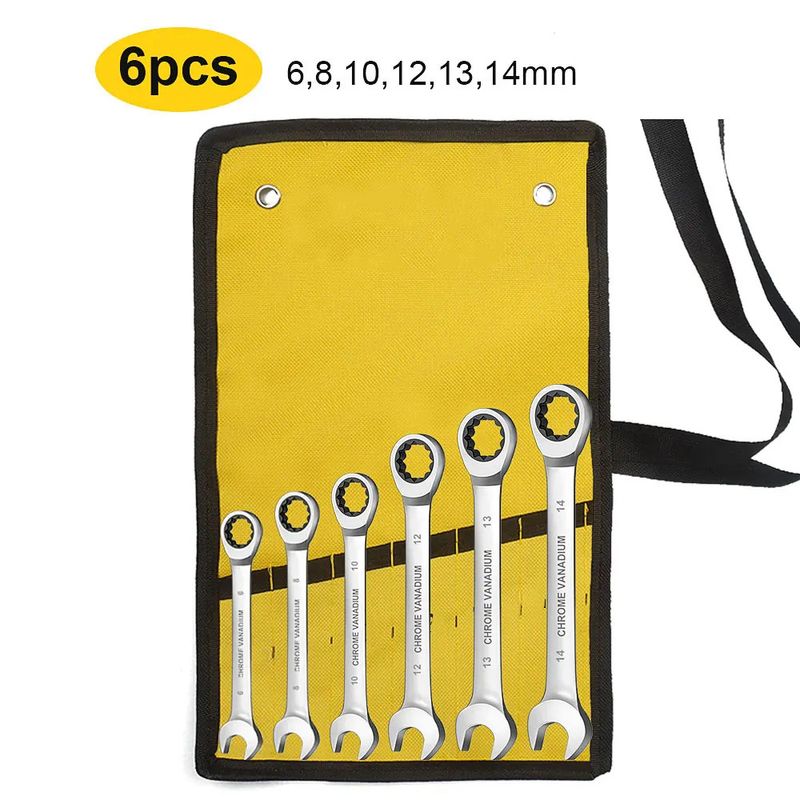 WEELEE Ratcheting Combination Wrench Set, Metric 6-19mm Auto Repair Key Wrenches,Spanner with Rolled Cloth Bags