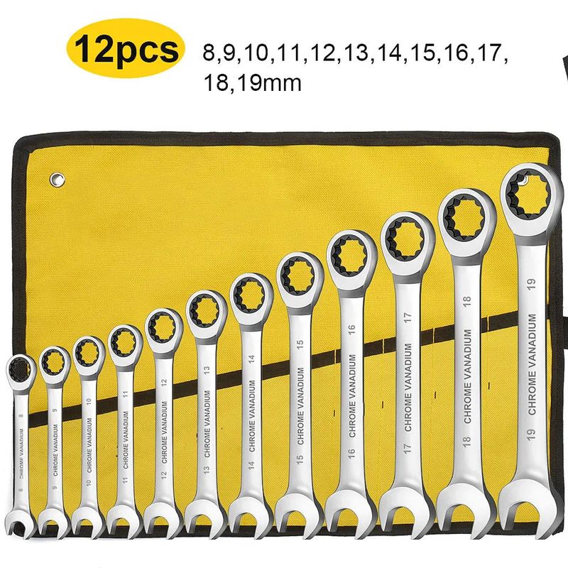 WEELEE Ratcheting Combination Wrench Set, Metric 6-19mm Auto Repair Key Wrenches,Spanner with Rolled Cloth Bags