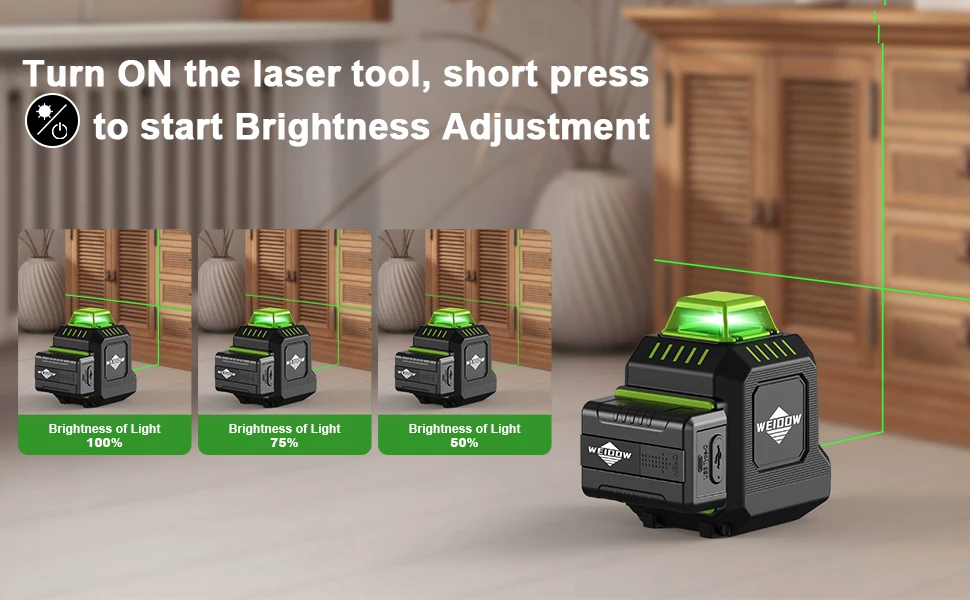 In the power saving mode, you can adjust different green light brightness according to different usage environments to work better with you. Laser measuring tool making it very suitable for installing shelves/doors and windows, furniture woodworking and hanging paintings/wallpapers. Besides, laser level are light weight and palm-sized design, easy to carry and IP54 water/dust resistance.