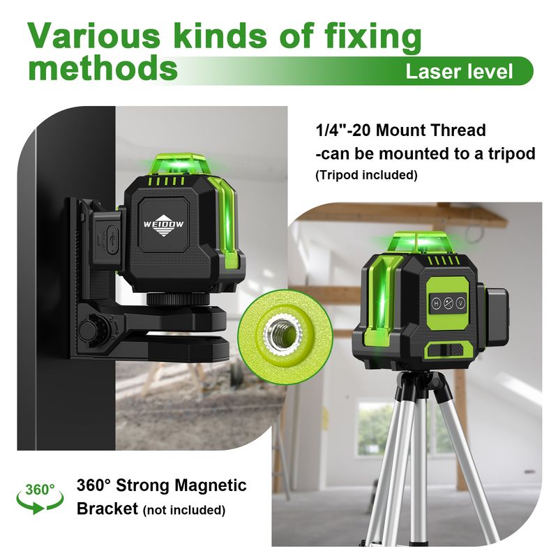 lazer level tool provides multiple installation methods, the laser level equipped with magnetic bracket, tripod, lifting base, 360° free rotating base which expands the use of the level laser and offers flexibility and convenience in various work settings, 16 lines laser level can be applied to floor tiles, ceilings, door, window, hanging wallpaper or furniture carpentry