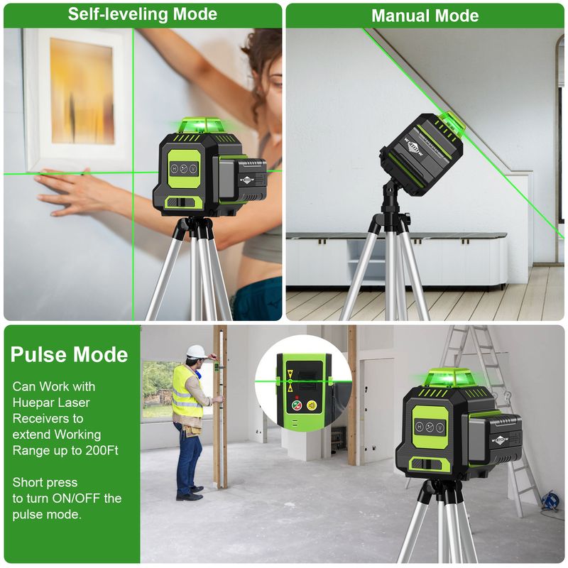 Equipped with the Smart Pendulum System, this laser level tool automatically self-levels within ±3° and alerts when it's out of level, ensuring precise setup and confidence in your work. Hold the top button for 3 seconds to lock the laser line at any angle in manual mode. Switching to Receiver (Pulse) mode is as simple as a single press of the top button, enabling seamless transition for enhanced functionality.