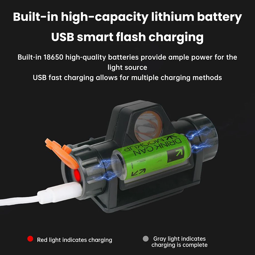 3. Built in large capacity lithium battery: Equipped with 18650 battery to provide sufficient energy for the light source, and USB intelligent flash charging.